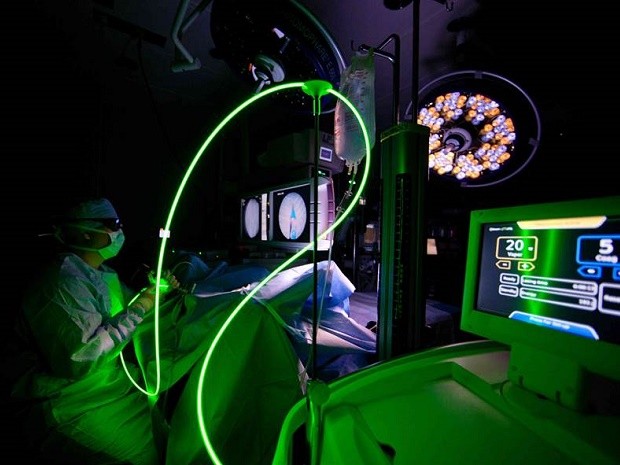 Cirurgia a laser para tratamento da hiperplasia prostática benigna, removendo o tecido aumentado através da uretra.